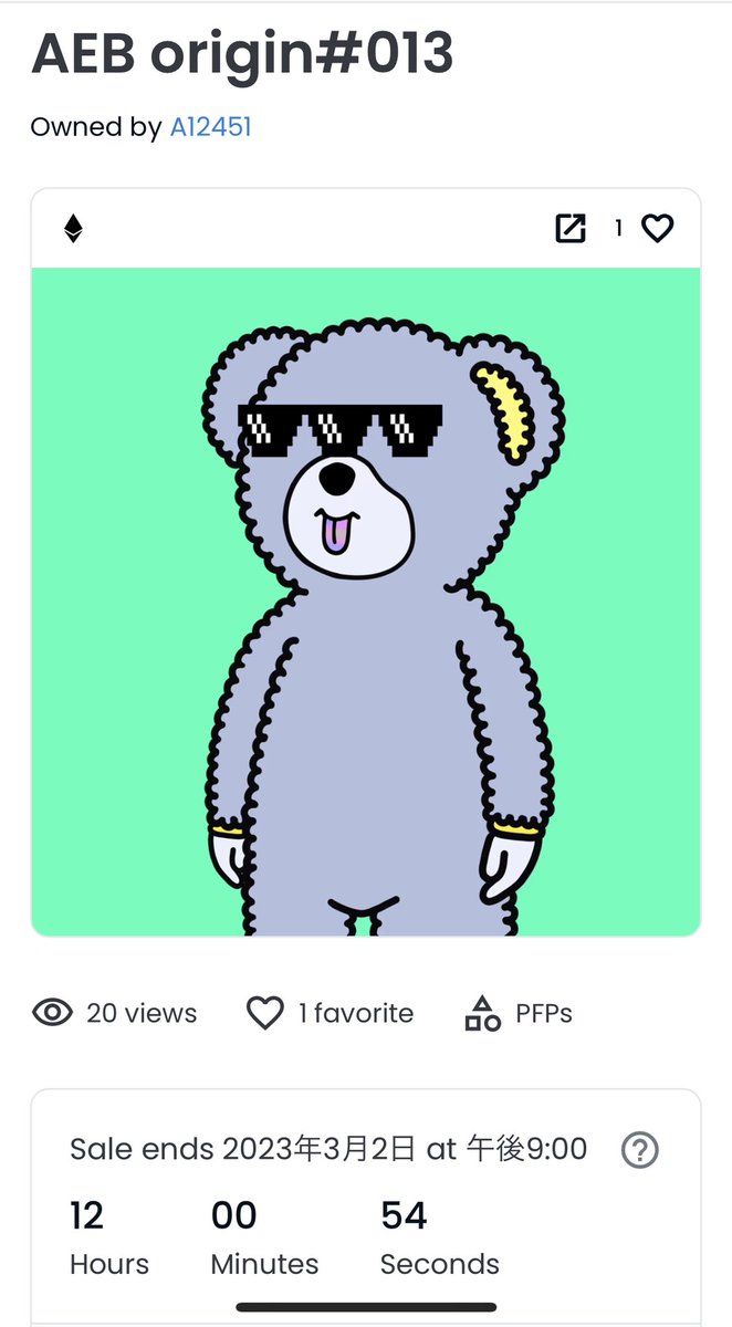 昨日開催された #AEB origin オークション#012 が0.8ETHで見事落札🎉✨