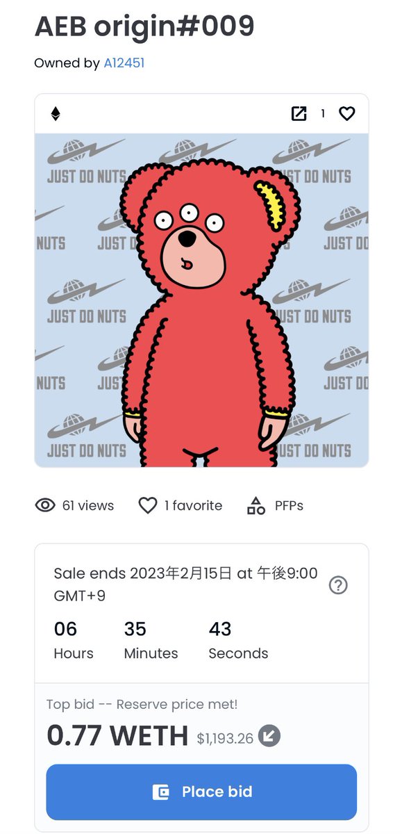 #008 のオークションが本日21時より24時間限定で開催中🐻✨
